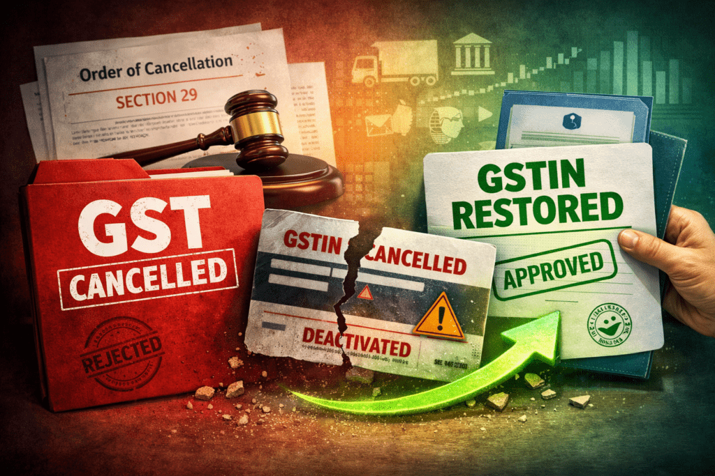 This article explains how cancellation happens, how to legally restore GSTIN, how to fight wrongful cancellation, and how to build permanent GST compliance protection.